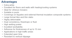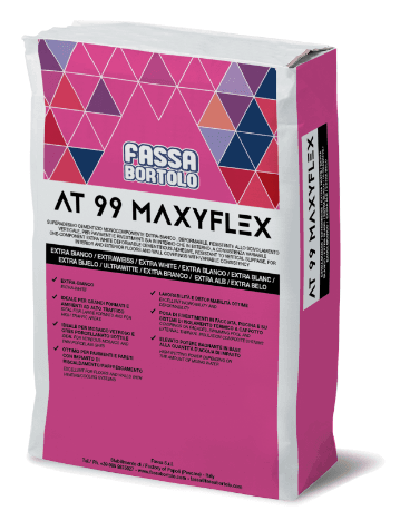 AT 99 MAXYFLEX is a dry premixed adhesive made from white or grey Portland cement, extra-white or grey graded sand, a high quantity of synthetic elastic resins and specific additives to improve workability and adhesion.