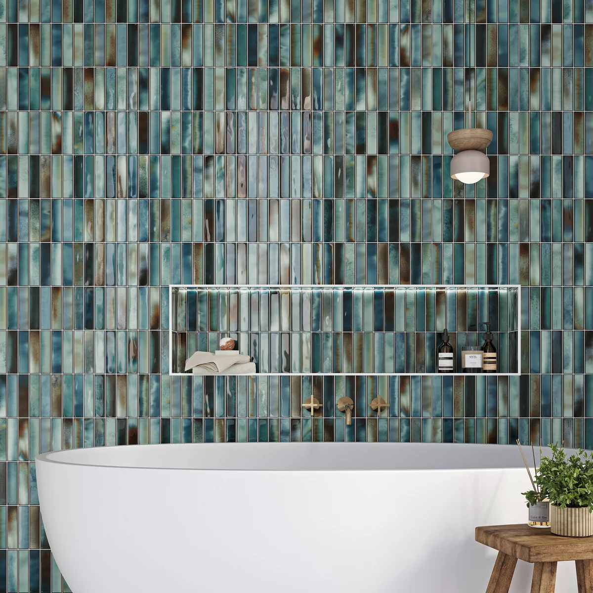 Introduce a bold yet timeless look to your interiors with the Borealis Gloss Ceramic tile. These 15x30cm tiles feature a striking blend of rich, multi-tonal hues with a high-gloss finish, perfect for adding depth and dimension to your space. The unique glazing technique creates a beautiful variation in each tile, making every installation one-of-a-kind.
