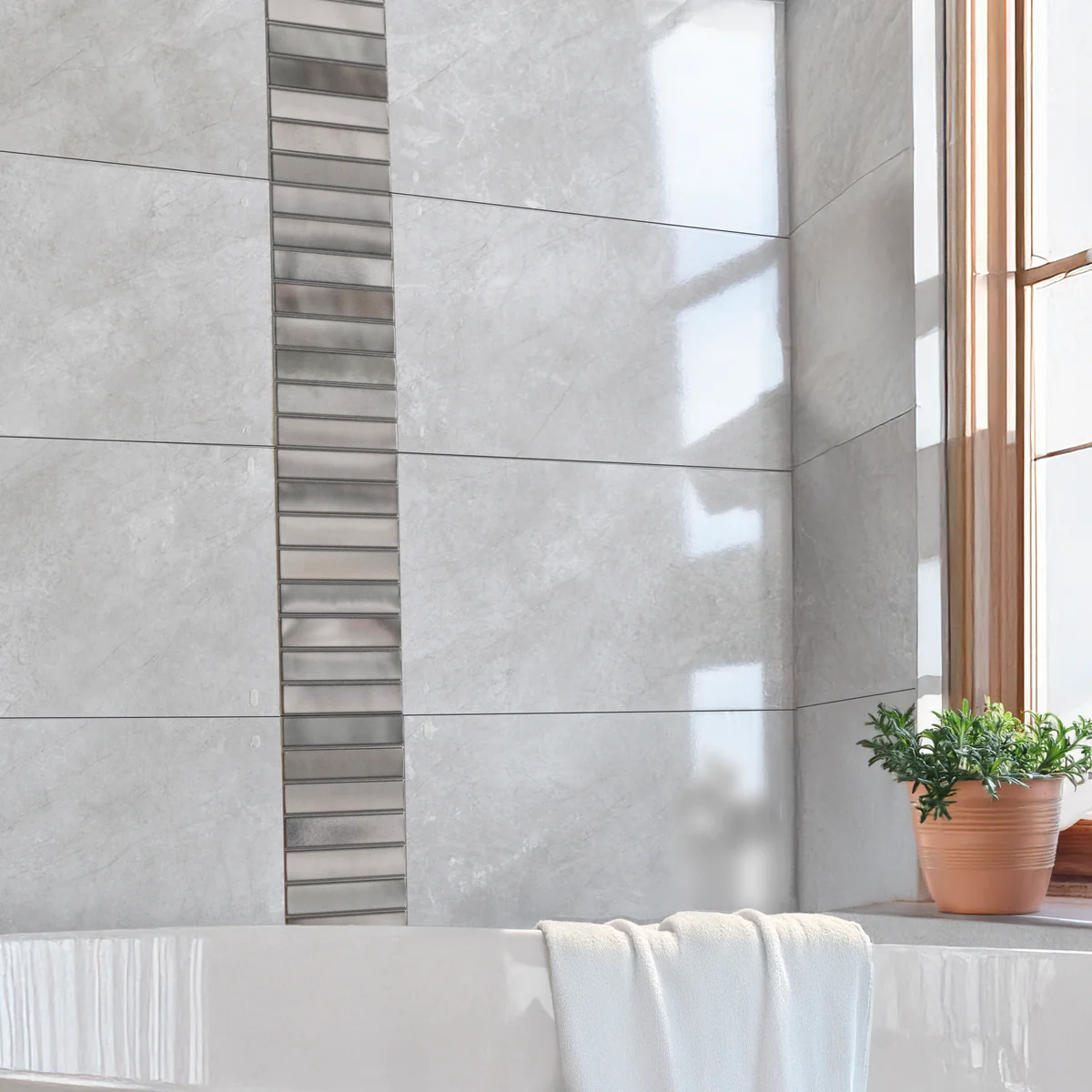 Perfect for bathrooms, kitchens, backsplashes and feature walls, the Borealis Collection blends contemporary and rustic elements to create a visually stunning effect in a warm grey.