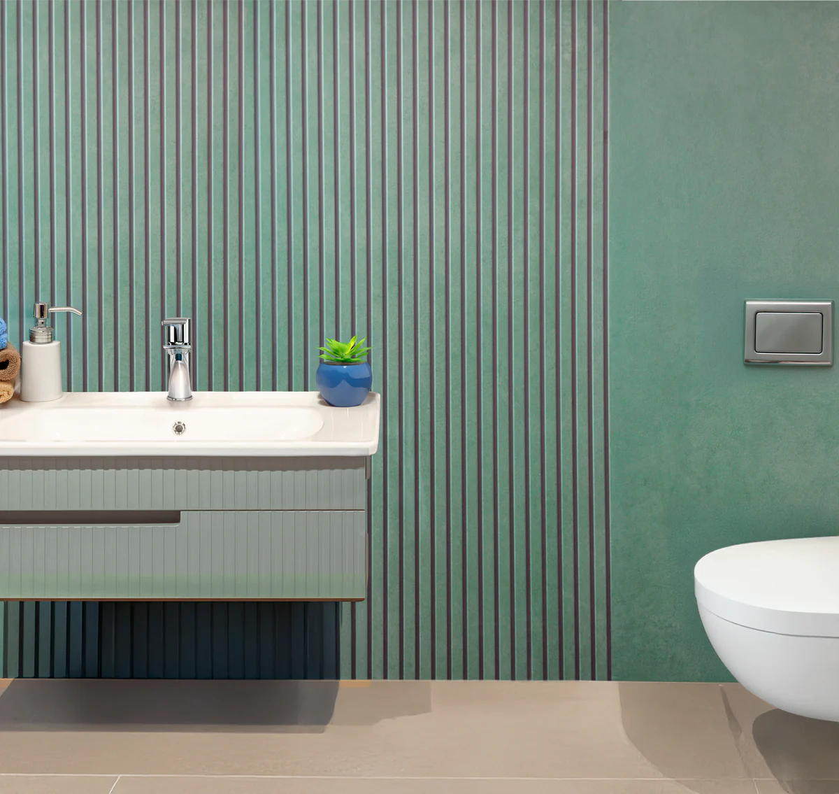Add a touch of modern sophistication with the Dark Plain tiles in Green. Featuring a sleek linear pattern and a calming matt finish, this 60x120cm porcelain tile is perfect for creating striking contemporary feature walls throughout your home.